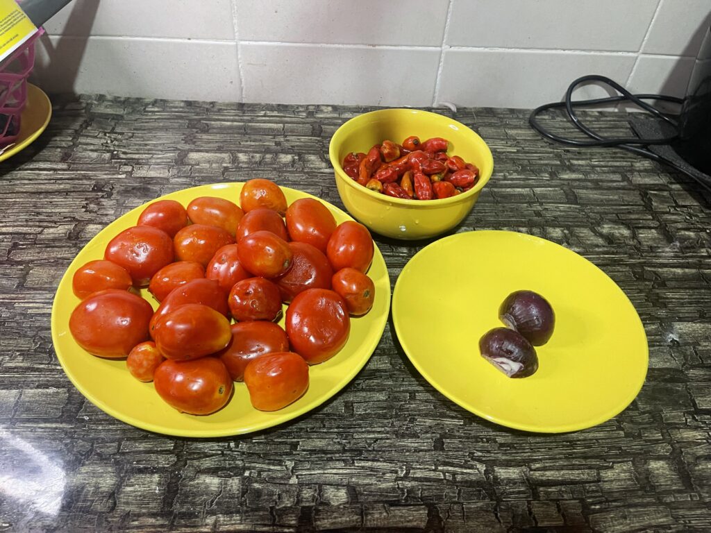 Step 4: Wash Tomatoes, Red Bell pepper, Onion, Scotch bonnet peppers